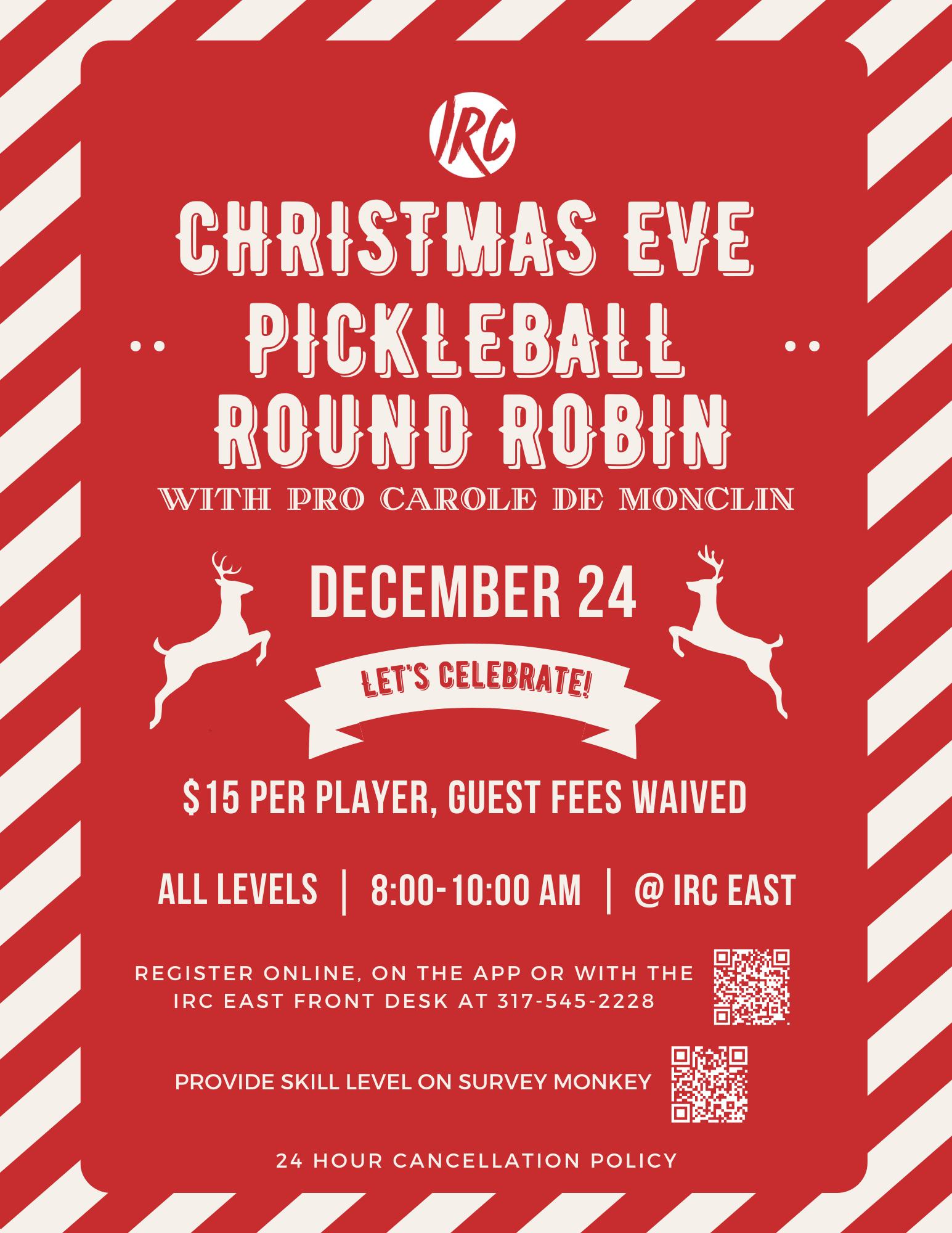 Celebrate Christmas by joining us for some pickleball fun! Join our pickleball pro Carole de Monclin for a fun filled Christmas morning!